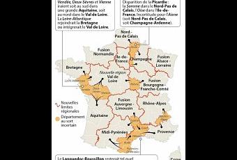 (1) Dans ce scénario à 15 régions, une grande région Aquitaine serait créée, ainsi qu'une région regroupant le Centre et une partie du Pays de la Loire. La Loire-Atlantique serait rattachée à la région Bretagne. Le Limousin et l'Auvergne fusionneraient, au même titre que l'Alsace et la Lorraine, ou la Haute et Basse-Normandie. Enfin, la Picardie serait partagée entre l'Ile-de-France et le Nord.
