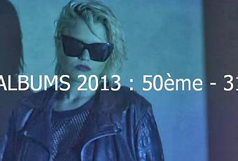 Après le lancement du top chansons, c’est au tour du top albums de faire son apparition. Voici les meilleurs albums selon Ears Of Panda de la 50ème à la 31ème place. Du rap, de l’électro, du rock, du folk, du R'n'B, de la pop, des disques qui font taper du pied, de belles mélodies, des disques singuliers… Il y en a pour tous les goûts. Vous trouverez tout en bas un lecteur pour écouter les chansons. En cas de problème (chanson inécoutable, lecteur absent/cassé…), n’hésitez pas à me laisser un commentaire pour corriger le problème. On se retrouve mercredi si tout va bien pour la suite du top chansons. Bonne écoute, bonne lecture, bonnes découvertes. Bisous. Top chansons 2013 : 100ème - 51ème
