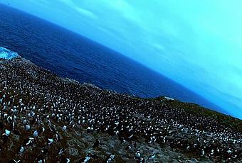Un caracara austral va vouloir s'emparer de l'œuf pour l'emporter. Quelques battements d'ailes et le cinéaste va obtenir ainsi un plan inédit du cheptel de manchots qu'il observait. Ensuite l'oiseau va laisser l'œuf rouler sans doute dans l'intention qu'il se casse. Cocasse !
