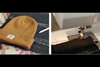 - Prendre un beanie et le mettre sur un vieux pull et enlignant le bord du beanie avec le bord du chandail.