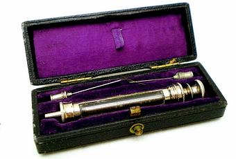 Bien que le neosalvarsan soit employé de manière instensive pour le traitement de la syphilis, il apparaît à l’approbation générale, qu’il n’existe pas de consensus sur son mode d’administration. Dans ce pays (France), ce produit est dissout dans un grand volume (200 à 300 cm3) de solution saline, et injecté par voie intraveineuse. Une méthode beaucoup plus simple a été adoptée à l’Hôpital Saint Louis de Paris (France) il y a plus d’une année ; elle est d’usage quotidien aujourd’hui. Cette méthode consiste en l’emploi d’une solution concentrée du médicament dans de l’eau distillée. Les détails techniques sont comme suit : le bras du patient est préparé selon la méthode habituelle. On verse 10 cm3 d’eau distillée préalablement bouillie puis refroidie dans un bécher stérile, et la dose requise de neosalvarsan, qui peut varier de 30 à 90 centigrammes, est ensuite rajoutée. La solution ainsi préparée est pratiquement isotonique par rapport au sang corporel, et peut donc être utilisée sans risques pour administration par injections intraveineuses. Le seul appareil nécessaire est une seringue de verre d’une capacité de 10 cm3. Un court tube de verre, contenant un bouchon de gaze stérile au niveau du gicleur à la place de l’aiguille avant que la solution ne soit aspirée depuis le bécher. Par cette simple manipulation, la solution est filtrée ; ainsi, le risque d’injection de particules non dissoutes est évité. Le filtre est alors remplacé par la seringue, et l’injection peut commencer. À l’instant où l’aiguille transperce la veine, on pourra distinguer du sang de couleur noire monter dans la seringue. À cet instant, un assistant retire le bandage-garrot du bras, et le piston de la seringue est actionné en mode injection. La procédure peut être effectuée en deux minutes environ, et mon exprérience personnelle de cette pratique s’est montrée efficace dans la plupart des cas.Les avantages suivants peuvent être avancés : 1. Aucune solution saline n’est requise ; simplement une petite quantité d’eau distillée à ébullition et refroidissement récents. 2. L’appareil est de nature simple et peut facilement être facilement et complètement stérilisé par ébullition. 3. La rapidité de la méthode diminue le risque de toute oxydation du matériel. Douglas J. Guthrie, M.D. Edin., Hôpital Saint Louis, Paris, dans The Lancet, 14 janvier 1914