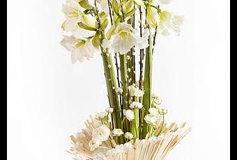 Le blanc symbole de simplicité, sobriété avec l'amaryllis, les renoncules et les chatons une harmonie parfaite pour cette superbe composition florale à la beauté glacée, signée Gil Boyard.