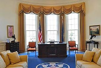 Le Bureau Ovale, siège du pouvoir exécutif américain, est à la fois unique et universellement connu. Il existe plus de 25 répliques grandeur nature du Bureau Ovale, disséminées à travers le territoire américain. Toutes identiques, de par leur forme, mais toutes différentes de par leur décoration intérieure, certaines étant les témoins de différents présidents, tandis que d’autres sont plus généralement l’incarnation de l’idée de cet espace particulier.