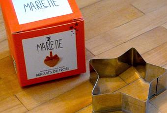 Cette jolie petite boite Marlette, je l'ai reçu dans la Birchbox de Décembre : 70g de préparation pour réaliser des biscuits de Noel (des sablés en somme). Cette marque Bio m'a tapé dans l'oeil depuis quelques mois déjà, mais le prix m'a fait un peu reculer. Alors ravi d'avoir reçu cette miniature dans ma Birchbox, je me suis empressée de la tester. Sous forme d'une poudre, ce mélange contient de la farine, du sucre de canne, de la cannelle, du gingembre, de la poudre à lever et du sel. Il n'y a plus qu'à ajouter du beurre et du lait. On mélange le tout et on pétri avec ses petites mains pour obtenir une belle bouboule, on l'étale avec un rouleau et on a plus qu'à découper avec un bel emporte pièce, enfourner 12 minutes et déguster.