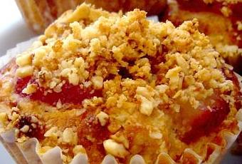 6. Versez la pâte (1 belle càs) dans des caissettes à muffins. Décorez de tranches de poire pochée et parsemez de noisettes concassées. Faites cuire 30 minutes environ dans un four préchauffé à 180 degrés.