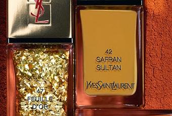 Elle s'appelle Spicy Collection, elle est inspirée des couleurs du Maroc si chères à Yves Saint Laurent, et elle se compose de trois vernis, deux colorés "Safran Sultan" et "Ambre Gingembre" et un top "Feuille d'or" qui comme son nom l'indique parera vos ongles de particules de feuille d'or parce que Marrakech et le Maroc c'est aussi cela, les dorures, les couleurs du Jardin Majorelle et la senteurs des épices à la tombée de la nuit.Un vrai voyage juste sur le bout de vos doigts...