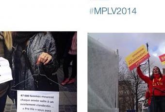 Cette manifestation fut une bataille idéologique tout d’abord par les pancartes et slogans affichés. Des associations féministes et pro-IVG ont ainsi répliqué comme à gauche face aux affiches encourageant la femme à garder un enfant non désiré: