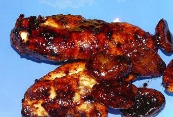 plat, aiguillette de poulet, sirop d'érable, viniagre de riz, abricot sec, sauce soja