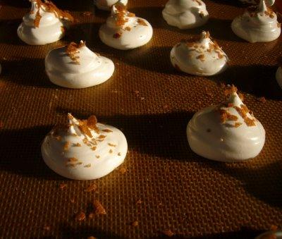 émietté le reste sur les meringues avant de les cuire. Le résultat est très bien ,elles sont craquantes à souhait .