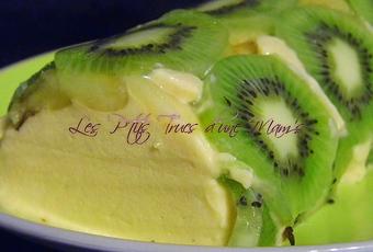 Coupez les kiwis en rondelles et tapissez en la gouttière.Ca permet un joli visuel au démoulage^^