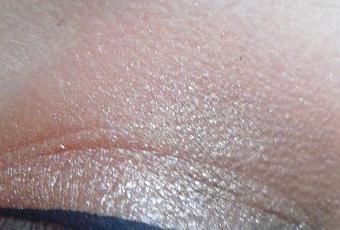 - J’ai appliqué le fard "Trick" avec un pinceau humidifié pour un rendu plus intense sur le premier tiers interne de la paupière mobile.