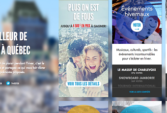 De même, l'OTQ investit en publicité, achat de mots-clés (AdWords), bannières et autres outils numériques pour inciter les Québécois à aller voter pour leur activité préférée à Québec. Ce faisant, on crée du trafic vers le site, où des suggestions et votes seront compilés pour les semaines et mois à venir, dans une perspective de création de contenu... en continu!