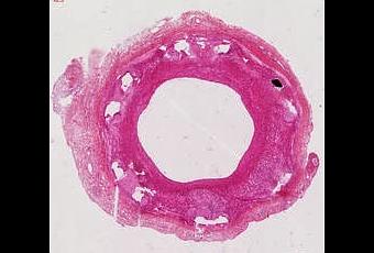 Artère avec endoprothèse ou "stent". La mise en place d'un ressort appelé "stent" permet de maintenir l'artère coronaire ouverte dans le cas d'un infarctus du myocarde.