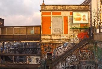 C’est donc par la façade arrière que nous commençons à deviner la Gare Frigorifique de Bercy qui desservait anciennement les entrepôts de vin de Bercy. Elle intervenait alors comme complément à la gare de marchandises à la Gare de Lyon, mais entreposait principalement les vins d’Algérie qui arrivaient de Marseille. Elle est laissée à l’abandon quand les entrepôts de Bercy ferment.
