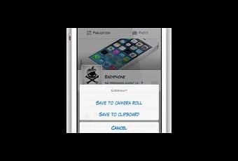 Une fois le tweak installé, un menu s’affiche lorsque d’un screenshot, et propose de copier la capture d’écran dans le presse-papiers pour la « coller » rapidement dans un SMS, mail, … sans passer par le flux de photos ! Il est aussi possible d’enregistrer l’image dans la pellicule photo également.
