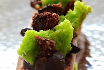 Vous l'aurez certainement remarqué je suis fan des éclairs , et du livre de Christophe Adam , un éclair de génie .Après avoir testé des recettes plus basiques , je m'attaque aujourd'hui à un éclair un peu plus stylé , très gourmand au chocolat et aux pistaches avec des textures différentes : crème , streusel , sponge cake ... Bien sûr je ne vais pas vous dire allez y c'est super facile et rapide , non une telle recette je l'avoue prend du temps et demande un minimum d'équipement mais franchement le résultat vaut vraiment le temps passé à les préparer et en le faisant tranquillement étape par étape c'est tout à fait faisable , la preuve , j'y suis arrivée :) Vous pouvez tout à fait anticiper en réalisant la ganache , le streusel en avance mais si possible pas les éclairs car ils ramollissent assez vite et il est préférable de les cuire le jour même .