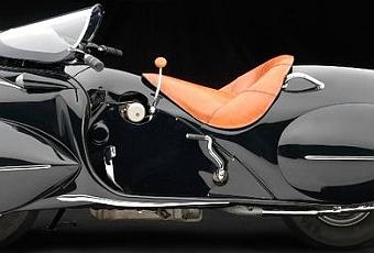 Ce motocycle unique dans un style Art déco a été présenté lors du Rhinebeck Grand National Meeting, aux Etats-Unis. A l’origine bicolore, l’engin a été repeint en noir pour sa restauration, une couleur qui lui donne un aspect encore plus incroyable, le prototype est considérée comme une œuvre d’art.