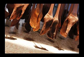 Elle a déjà utilisé le collant comme seconde peau dans une importante série photographique, Mutantes, entre 2003 et 2006 ainsi que dans une installation Levitando a solo un pie, composée de pieds de cire suspendus dans des bas. C’est une matière intéressante à insérer dans des créations différentes en raison de sa capacité à cacher et à révéler en même temps, précise- t- elle .