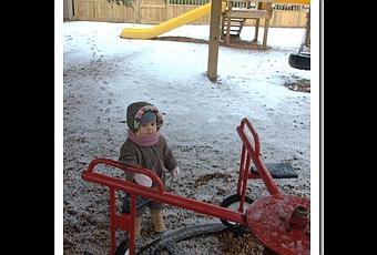 Le lendemain de Noël, quelques flocons de neige tombèrent. Max et son Papi descendirent à l’aire de jeux profiter des quelques millimètres de neige.