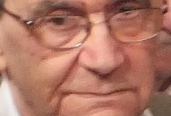 Légende de la photo : Le Dr Ernest Martin dans la salle Pierre Mendès France de l'Hôtel de ville de Louviers lors de la visite de François Hollande en janvier 2013. Derrière lui, son ami Jean Noisillet. (photo Jean-Charles Houel)