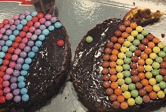 Deux brownies et quelques gaufres de la marque, un peu de ganache et des smarties, et le tour était joué !