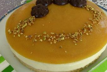 Chauffer 100 grammes de purée de mangues. Y ajouter la gélatine préalablement ramollie 5 minutes dans de l'eau froide, pus égoutée. Bien mélanger jusqu'à dissolution complète de la gélatine. Retirer du feu et incorporer la reste de purée de mangues en mélangeant bien. Le mélange doit être à peine tiède. Le verser sur l'entremets, lisser avec une spatule et faire prendre au moins 3 heures au réfrigérateur.