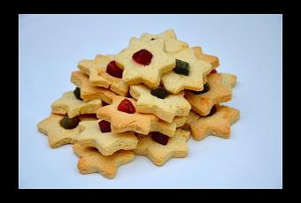 Déposer un morceau de fruits confit sur chaque sablé, enfoncer légèrement.
