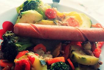 Voici le dernier plat de ma première semaine de détox ou je devais manger essentiellement des légumes, donc aucun féculent. La recette que j'ai trouvée été accompagner d'aucune viande, il me restait un knackis donc je l'ai rajouté ;)