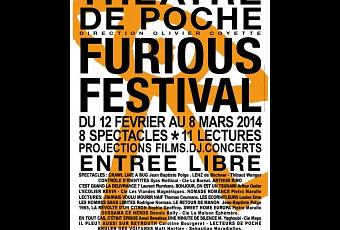 Du 12 février au 8 mars 2014, le Théâtre de Poche laissera de jeunes artistes prendre possession de sa scène. Pendant un mois, le théâtre proposera des spectacles, des lectures, des projections de films, des concerts,… Le Furious Festival a pour but de se rassembler autour de la jeune création, d’attirer un public curieux et ouvert d’esprit.