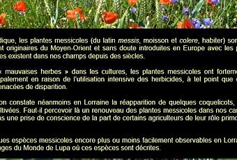 La page Plantes messicoles en Lorraine est accessible à partir de la page d'accueil du Monde de Lupa. Elle regroupe quelques espèces messicoles encore plus ou moins facilement observables en Lorraine. Les entrées de la liste qu'elle renferme renvoient aux pages du site où ces espèces sont décrites.
