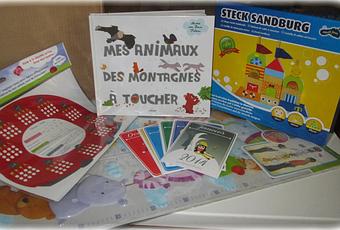 La box est sympa mais je m'attendais à autre chose, vu que l'on n'avait pas eu de box le mois dernier, le château & le livre plaisent beaucoup à Lola, la toise sera pour la salle de jeu car cela ne va pas du tout avec le thème de leur chambre. J'aime beaucoup les cartes souvenirs j'ai d'ailleurs fait la première photo avec Lola cette après-midi ( et je vais faire pareil avec Emma ). Il n'y a que l'Orgamalin que je ne pense pas utiliser mais je le mets de côté pour plus tard.