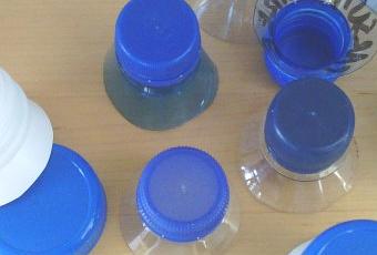 Matériel : bouteilles en plastique vide, sacs de congélation en plastique biodégradable. Un contenant plastique de forme carré. 1 marqueur.