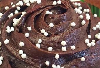 J'ai fais des cupcakes avec un topping ganache chocolat et d'autres avec un topping ganache fraise. Pour la décoration, quelques petites perles de sucre pour égayer l'ensemble.
