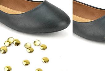 - Idée n°1 : vous pouvez par exemple coller sur les ballerines, de façon symétrique des clous autocollants. Laissez parler votre imagination : vous pouvez coller ces strass / clous pour former un coeur ou une autre forme géométrique ou bien pour faire une ligne comme sur le visuel :