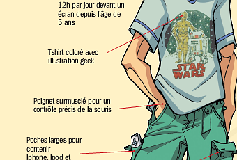 Pour le reconnaître, c’est simple : il porte des T-shirts aux logos étranges, parle un langage bizarre incompréhensible pour le commun des mortels, se nourrit principalement de se qu’il peut commander sur internet et préfère passer une soirée à réparer son ordi que de sortir avec ses amis…