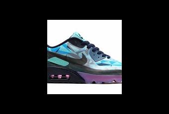Réinterprétation de la classique Nike Air Max 90, la Nike Air Max 90 ICE arbore le tout nouveau coloris « Barely Blue ». Les sneakers ont une construction en mesh et Hyperfuse doté d’un imprimé triangulaire combinant différentes teintes de bleu, contrastés par des accents de noir et une semelle intermédiaire translucide rose.