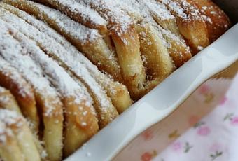 J'avais déjà repéré cette brioche, si original, à effeuiller tranche après tranche, délicieusement parfumée à la cannelle... Alors hier, complice le mauvais temps et une journée tranquille, je me suis lancée. Le résultat est top ! Faites attention car c'est très addictif !!