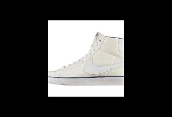 La marque française A.P.C. est restée fidèle à son style minimaliste et propose une Nike Blazer Hi en canvas blanc cassé complété par une doublure en cuir perforé bleu marine et des détails en cuir blanc.