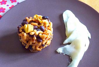 J'ai servi mes pâtes aux haricots noirs, façon riz cantonais avec mon pâtisson.