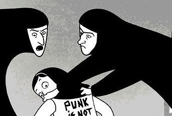 Difficile, cependant, de ne pas regretter certains choix faciles, comme cette structure en flash-back qui n’apporte pas grand chose au récit. Les lecteurs de la bande dessinée remarqueront bien sûr l’absence ou la redistribution de passages entiers, ce qui s’explique par la durée du film – quatre-vingt dix minutes contre quatre tomes. Malheureusement, le nécessaire raccourcissement provoque une impression de précipitation sur certains éléments passionnants du récit. Une précipitation qui, associée à l’inversion de passages, change radicalement le sens de certains événements, romancés pour les besoins du film (la mort de Farsad, dans le tome 4, advient avant le mariage de Marjane et Réza ; dans le film, elle semble provoquer leur divorce !). On regrette surtout une voix off qui, sans être permanente, tourne rapidement à la solution facile et systématique, béquille narrative qui transpose littéralement les phylactères. Dommage que Satrapi n’ait pas tenté de trouver, parmi les (nombreux) modes de narration du cinéma, une solution plus téméraire.