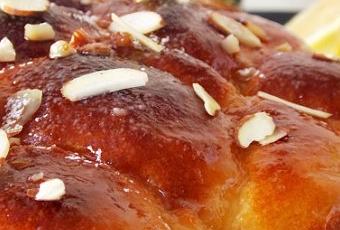 8. Retirer la brioche quand elle est cuite et badigeonner la surface de sirop remettre dans le four option grill et surveiller.
