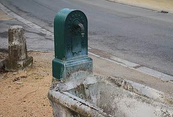Mais dont la fontaine centrale est encore alimentée en eau potable (chose rare) en été :