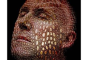 Le visage fait littéralement corps avec un ensemble de matières minérales, végétales, brutes ou ouvragées, 60 têtes voient le jour comme autant de sculptures/photographiques : homme fleur, homme écorce, marbre, rivière, fontaine, homme oursin, galuchat, lichen, corail…