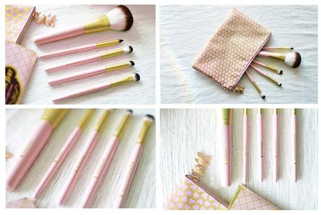 J'ai eu l'occasion de tester le nouveau kit Teddy Bear. Sur cette collection, je pense que c'est vraiment LE truc qui m'aura le plus séduite ! Ce kit est vraiment sublime. Il comprendra : une trousse beauté doré (avec petits coeurs roses, fermeture à glissière et petite breloque en forme de nounours), mais aussi : un pinceau poudre, un pinceau à paupières, un pinceau à contours, un pinceau liner et un pinceau fleufi !