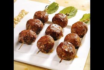 - Réaliser des petites boules avec cette préparation, puis les enfiler sur des piques en bambou en pressant légèrement.