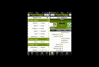 - Résultats : consultez les résultats et les calendriers de tous les championnats français (Ligue 1, Ligue 2, National) et internationaux. Pour chaque match, vous pouvez accéder aux temps forts (buts, cartons, …), résumé, statistiques et compositions des équipes.