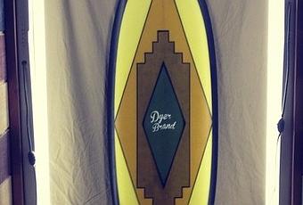 5’3 Belly Tanker with Navajo blanket inspired glass. The colors on the deck are all separate inlays not paint or foam stains.