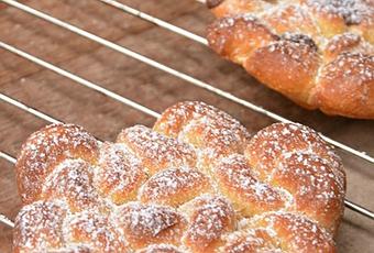Pour la brioche au rocher au chocolat noir, couper le rocher très grossièrement et disposer ces morceaux au coeur de chaque "fleur" d'une brioche nature.