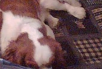 Une photo, dont je n’ai souvenirs d’avoir partagé ici ou sur facebook, de Volney qui squattait le panier de sa « copine » Abbye (le staff de mon père) :