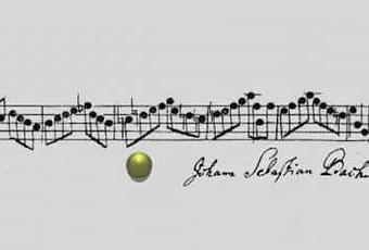 un anneau de Moëbius. Les notes se succèdent à l'endroit, puis à l'envers dans cette partition puis dans un entremêlement des deux pour finir en apothéose en anneau infini combiné avec la mélodie